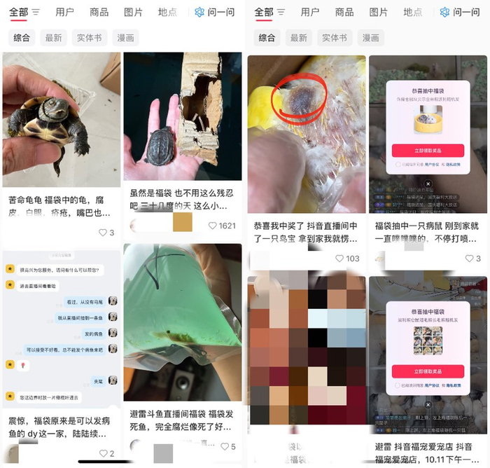社交媒体上多名消费者收到福袋病宠。