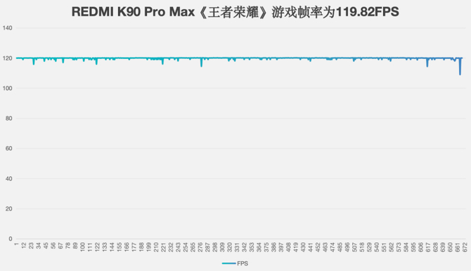 经过我们的实际测试,可以看到,REDMI K90 Pro Max一局15分钟的游戏下来,游戏帧数平均在119.82FPS,游戏帧数非常稳定,整个游戏过程的平均功耗为3.25W,核心最高温度仅为34.6摄氏度,性能释放非常出色。