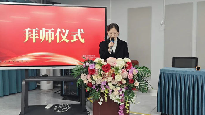 导师依次登台接受聘书,师徒代表、互助小组代表现场签字确认。徒弟代表向师傅敬上清茶,全体徒弟向师傅三鞠躬,以“谢师领入门、勤学记师恩、携手共成长”传递敬意与担当。