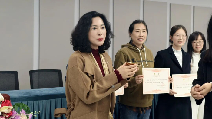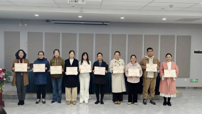 文校长等导师代表为获得西安市教育教学科研成果一、二、三等奖的教师颁发荣誉证书。一张张荣誉证书捧在手中,不仅是对教师们科研能力的肯定,更是对“青蓝工程”帮扶成效的最佳见证。