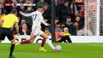 第45+1分钟,大马丁出球失误,直接传给了萨拉赫!萨拉赫不停球直接右脚推射空门,利物浦1-0领先维拉↓