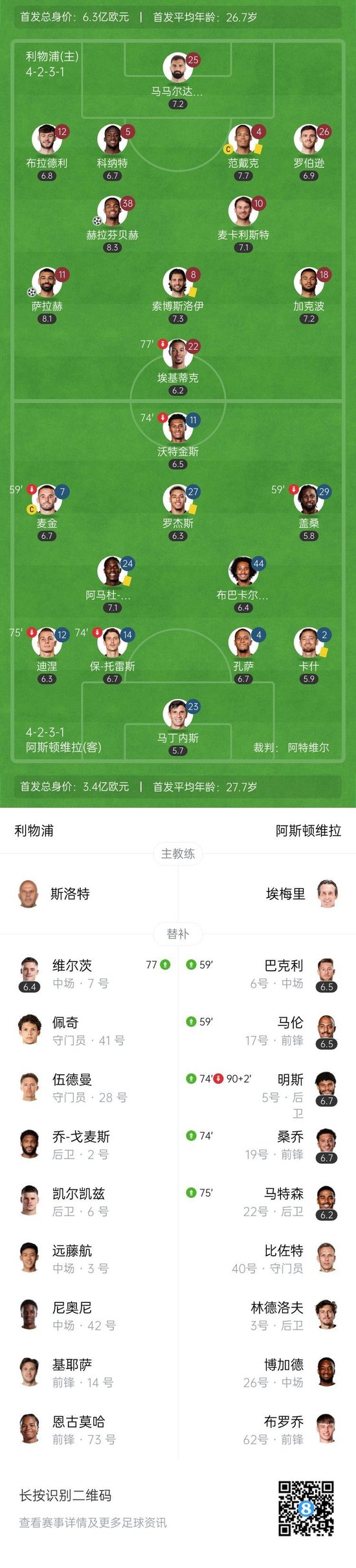 第43分钟,索博斯洛伊右路传中,埃基蒂克甩头攻门,皮球顶进球门右下角!但随后VAR判定埃基蒂克越位在先,进球无效↓